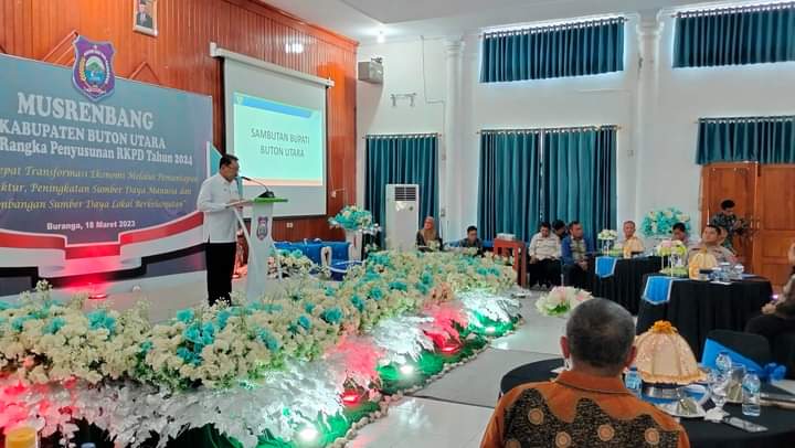 BURANGA, Matabuton.com-Bupati Buton Utara (Butur) Dr. H. Muhammad Ridwan Zakariah membuka Musyawarah Perencanaan Pembangunan (Musrenbang) tahun 2023 dalam rangka Penyusunan Rencana Kerja Pembangunan Daerah (RKPD) tahun 2024, di Aula Bappeda Butur, Sabtu, 18 Maret 2023.