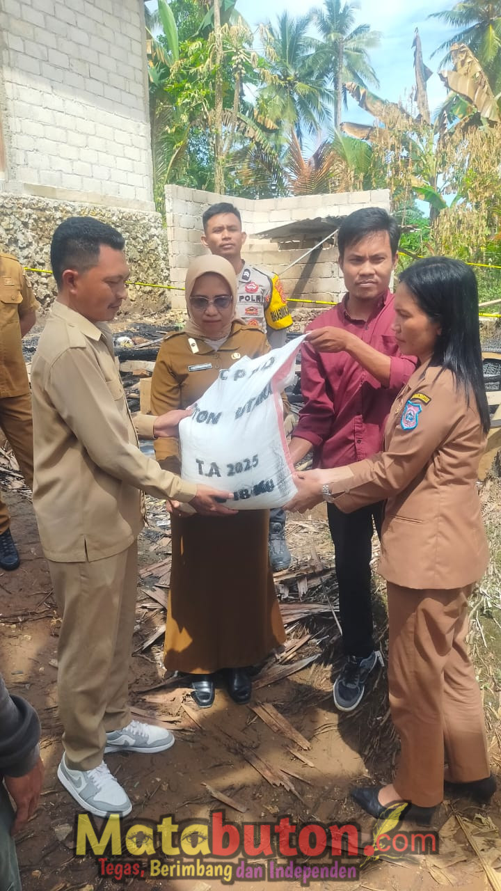 Bantuan tersebut diserahkan langsung oleh Kepala Dinas Ketahanan Pangan Buton Utara, Sadaria, sebagai bentuk kepedulian pemerintah daerah terhadap warga yang tertimpa musibah.