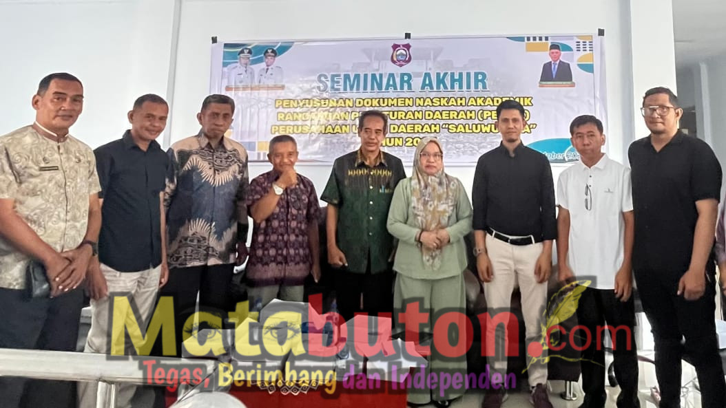 BURANGA, Matabuton.com-Naskah Akademik Rancangan Peraturan Daerah (Raperda) tentang Perusahaan Umum Daerah (Perumda) Saluwu Kita Kabupaten Buton Utara akhirnya memasuki tahap akhir. Finalisasi naskah tersebut ditandai dengan digelarnya Seminar Akhir di Ruang Rapat Kantor Penghubung Kabupaten Buton Utara, Jalan Wijaya Kusuma, Kemaraya, Kendari, pada Jumat (17/10/2025).
