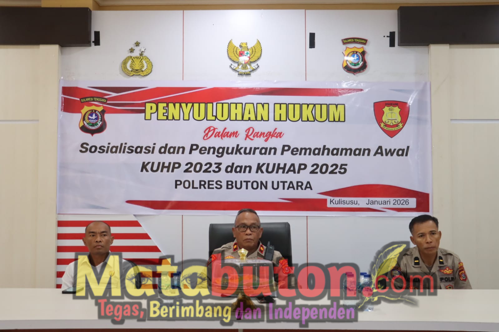 BURANGA,Matabuton.com- Polres Buton Utara menggelar penyuluhan hukum untuk mensosialisasikan KUHP Nasional 2023 dan KUHAP 2025, Rabu (21/1/2026). Agenda ini sekaligus menjadi instrumen pengukuran pemahaman awal terhadap regulasi pidana terbaru.