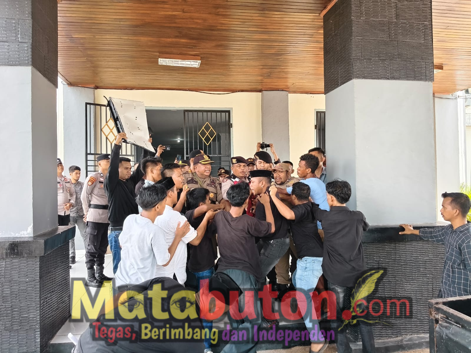 BURANGA,Matabuton.com-Aksi demonstrasi yang digelar LSM Perisai di kantor DPRD Kabupaten Buton Utara, Kamis (5/3/2026), sempat diwarnai kericuhan antara massa aksi dan petugas Satpol PP.