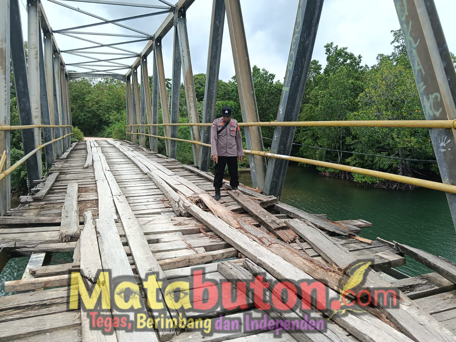 BURANGA,Matabuton.com-Kapolres Buton Utara AKBP Totok Budi S. turun tangan merespons keluhan masyarakat terkait kondisi lantai jembatan di Kelurahan Bonegunu, Kecamatan Bonegunu, yang rusak dan membahayakan pengguna jalan.