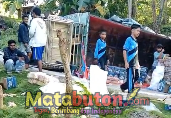 Truk Sembako Terbalik di Tanjakan Pongkowulu, Warga Minta Perbaikan Jalan