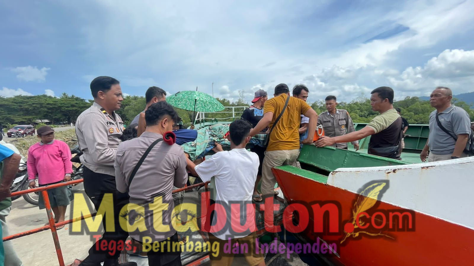 Dalam kejadian tersebut, sejumlah personel kepolisian bersama warga bahu-membahu mengangkat dan mengevakuasi pasien agar bisa segera diberangkatkan menggunakan kapal untuk mendapatkan penanganan lebih lanjut.