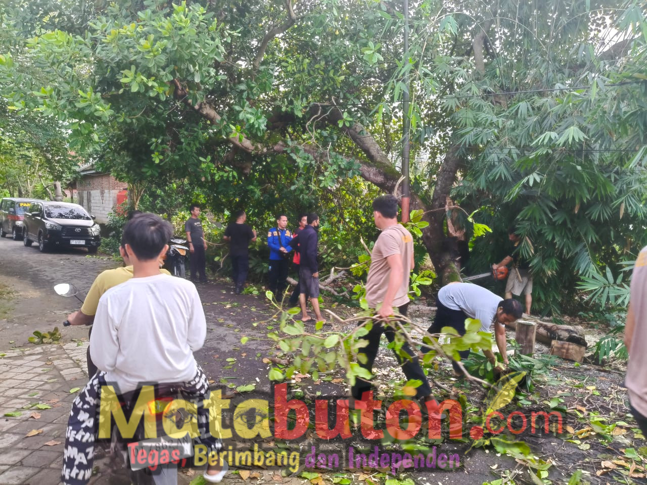 Setibanya di lokasi, personel gabungan segera melakukan pemotongan batang dan ranting pohon menggunakan peralatan yang tersedia. Proses evakuasi juga melibatkan warga setempat yang turut membantu secara gotong royong.