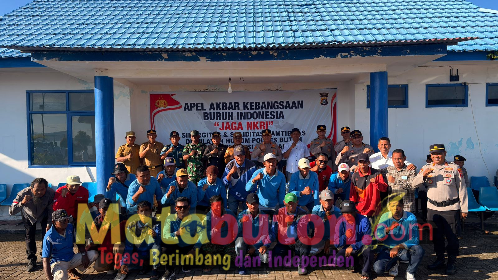 BUTON,Matabuton.com-Kapolres Buton, AKBP Ali Rais Ndraha, memimpin langsung Apel Akbar Kebangsaan Buruh dan Serikat Pekerja Tahun 2026 yang digelar di Pelabuhan Banabungi, Kecamatan Pasarwajo, Kabupaten Buton, Selasa (28/4/2026) pagi.