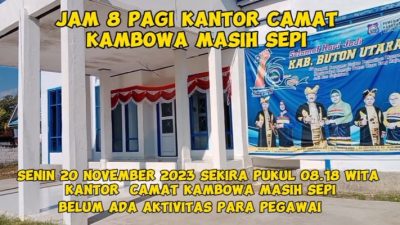 BURANGA,Matabuton.com-Kantor Camat Kambowa, Kabupaten Buton Utara Senin 20 November 2023 pukul 08.18 WITA masih terlihat…